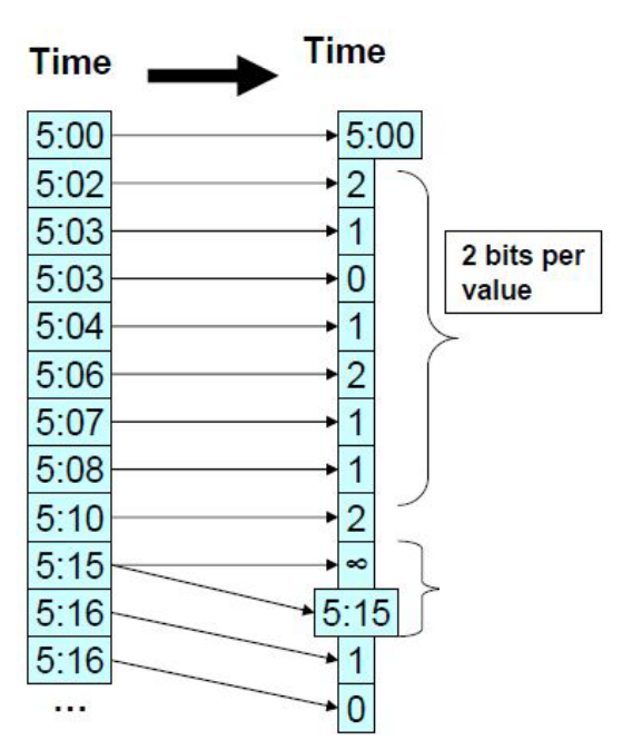 Bits, so wird ein neuer Referenzwert abgespeichert. Diese Methode reduziert den Speicherbedarf, insbesondere wenn die Daten sequenziell und die Unterschiede zwischen den Werten klein sind. Differential Encoding wird häufig bei Daten verwendet, deren Werte tendenziell inkrementell sind, bspw. bei Zeitreihen.