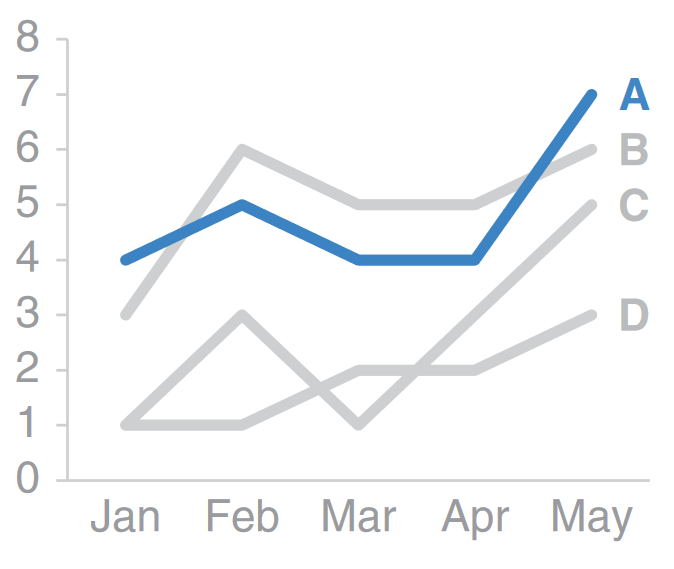 Maximal vier Linien sollten farblich hervorgehoben werden.