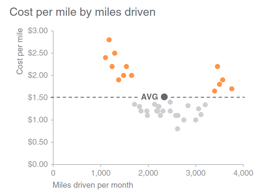 - Die meisten Datenpunkte sollten eine “Hintergrundfarbe” erhalten, maximal 5 Datenpunkte sollten hervorgehoben werden, um die Schlüsselidee zu unterstreichen.