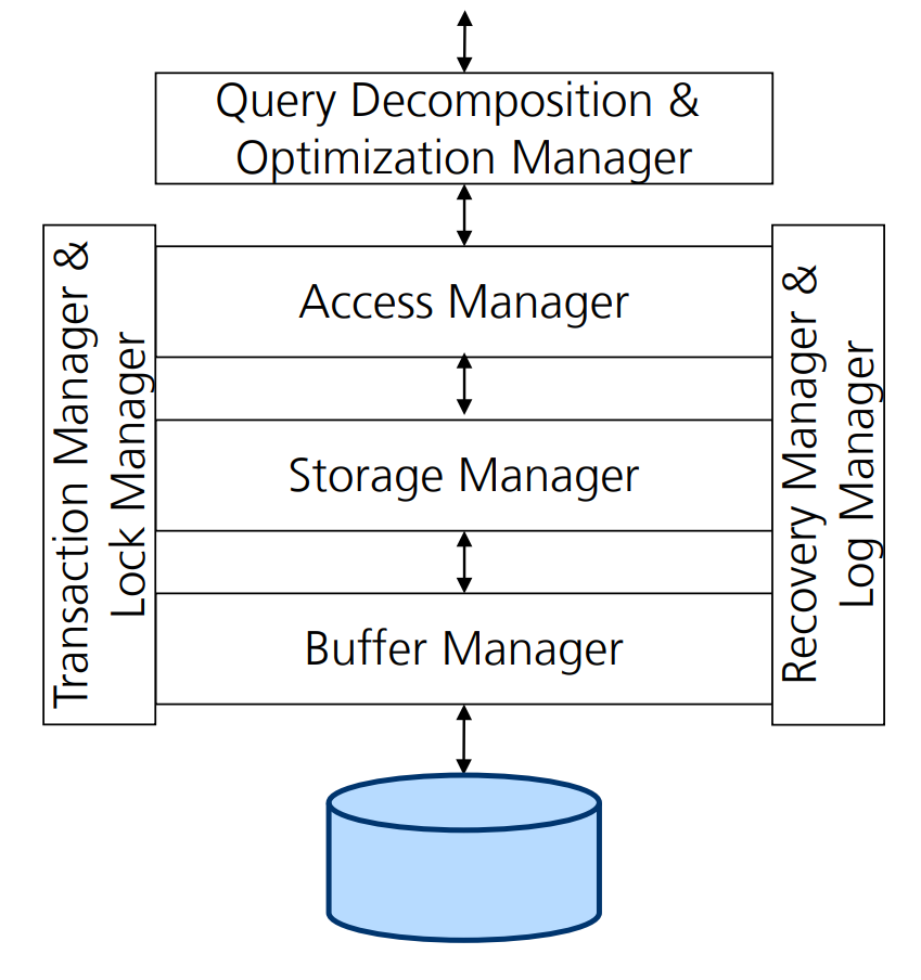 - Storage Manager: Verwaltet die Speicher, nimmt die optimierten Queries entgegen und führt sie aus.