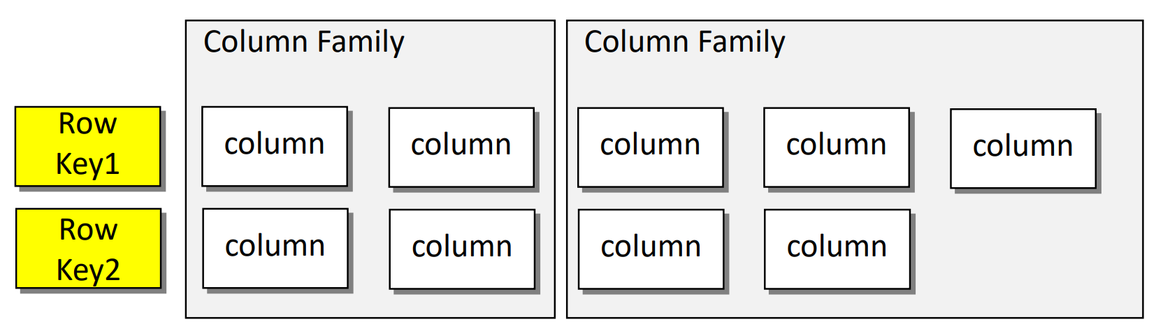 Column Families stellen eine Gruppierung einzelner Columns dar, die physisch gemeinsam abgespeichert werden. Unterschiedliche Column Families werden auf unterschiedlichen verteilten Nodes gespeichert.