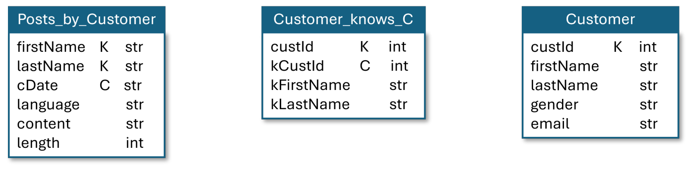 - Im Sinne der Performanz ist es daher wichtig, dass gemeinsam abgerufene Daten denselben Partitionsschlüssel verwenden. (Bspw. den Vor- und Nachnamen eines Kunden - oder einfach seine