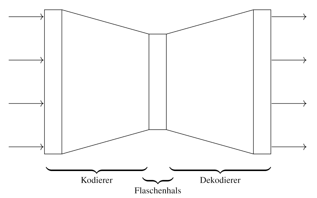 , der die Eingabedaten aus in eine (in der Regel) niedrigdimensionale latente Repräsentation überführt und - einem Decoder