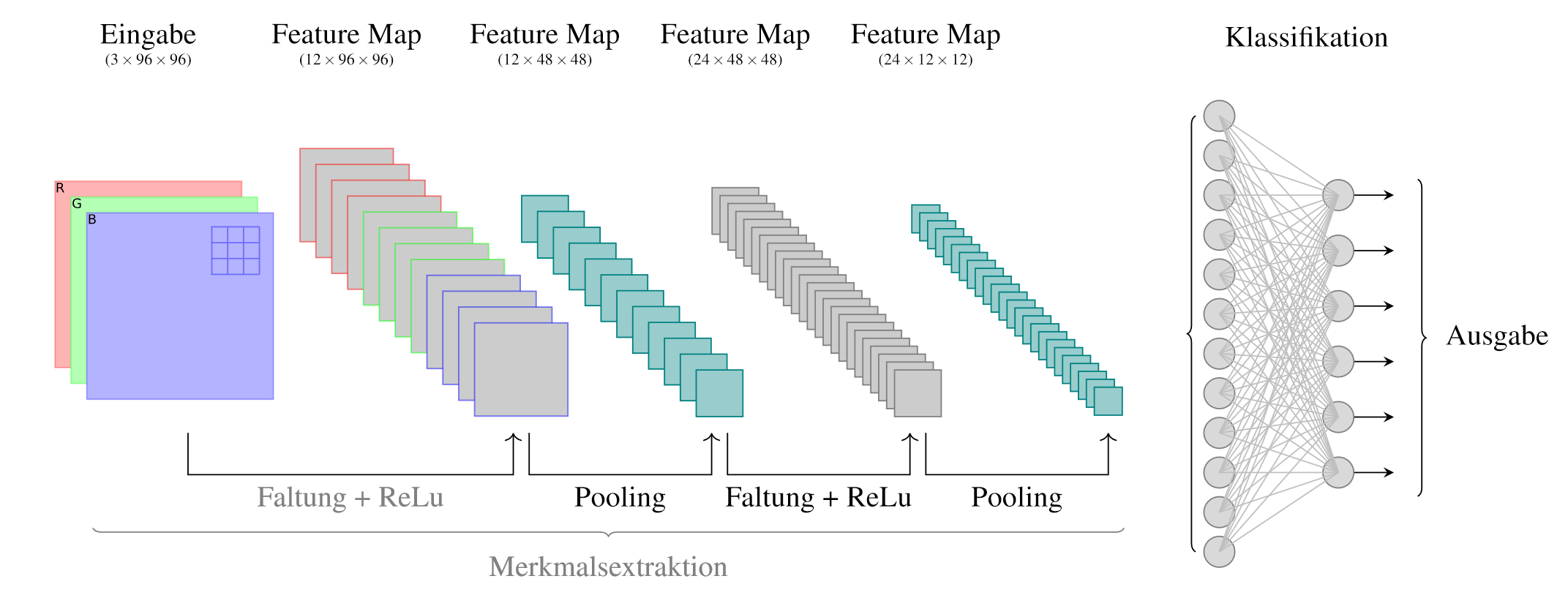 Als Convolutional Neural Network (kurz CNN) bezeichnen wir neuronale Netzwerke, die speziell für die Verarbeitung von Matrizen (i.d.R. Bilder) entwickelt wurden. Sie sind besonders effektiv bei Aufgaben wie Bilderkennung, Objektdetektion und Bildsegmentierung.