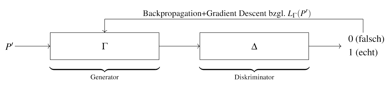 Als Generative Adversarial Network (kurz GAN) bezeichnen wir eine neuronale Architektur, die aus zwei gegeneinander trainierenden neuronalen Netzwerken besteht: dem Generator und dem Diskriminator.