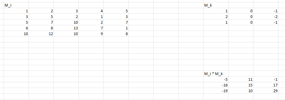 In Excel können wir die Matrixfaltung ziemlich einfach wie folgt berechnen, nach dem Schema