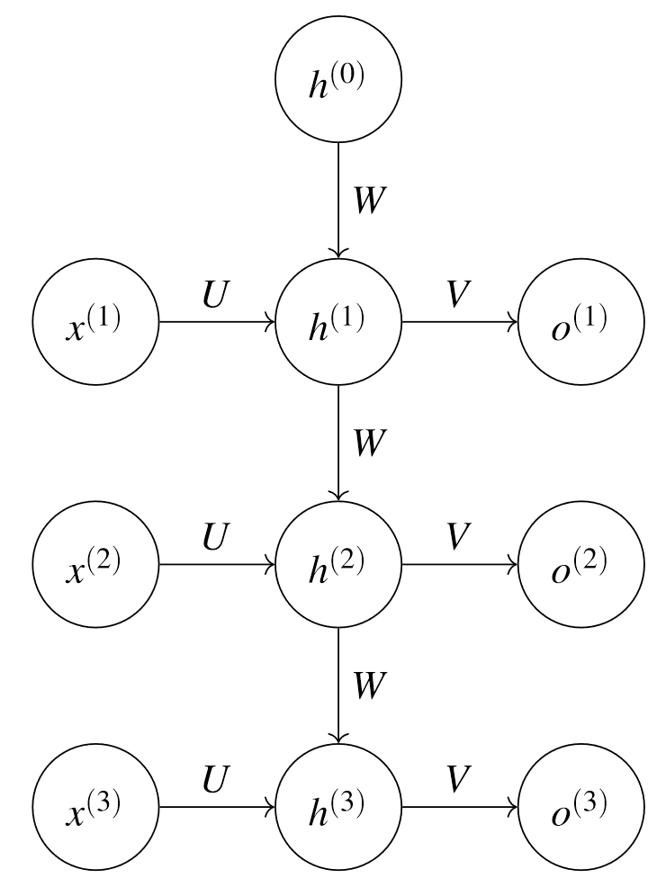 Allgemein lässt sich der Berechnungsgraph eines rekurrenten Layers reduziert darstellen durch
