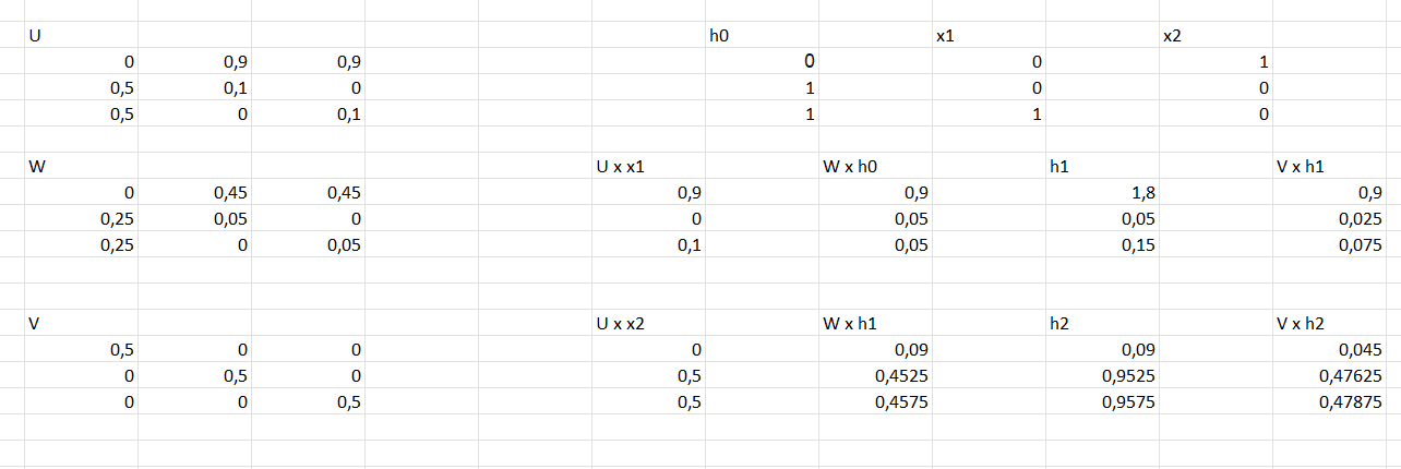 In Excel können wir RNNs ziemlich einfach wie folgt berechnen nach dem Schema