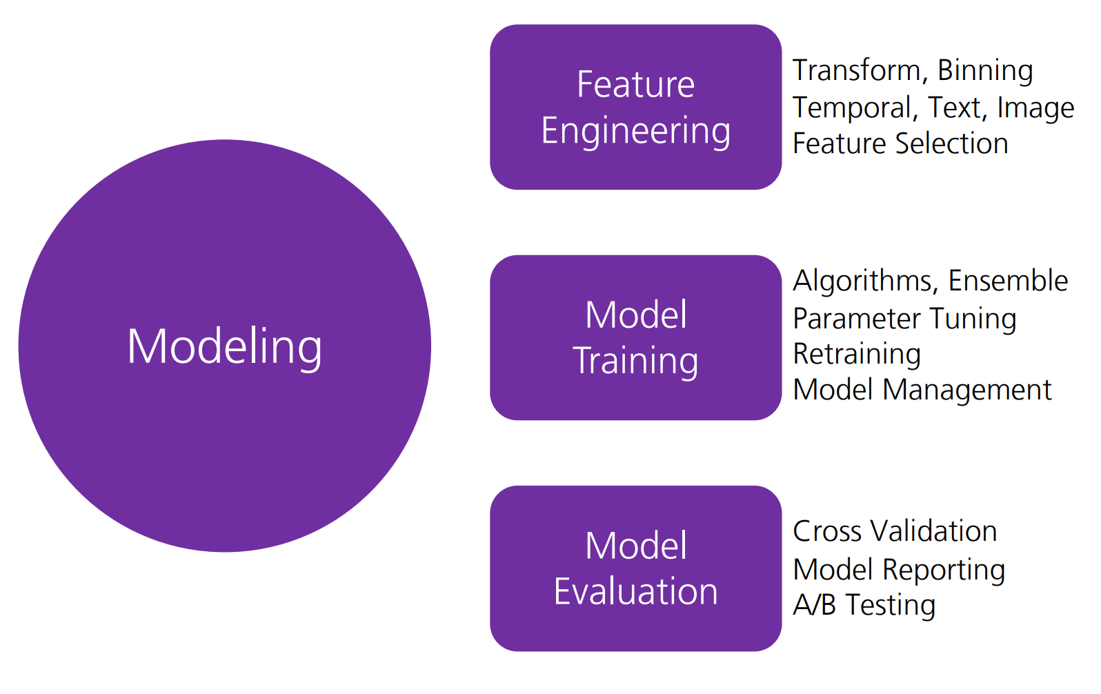 - Modellierung: Entwickeln und Trainieren von Modellen, um Geschäftsfälle zu adressieren.