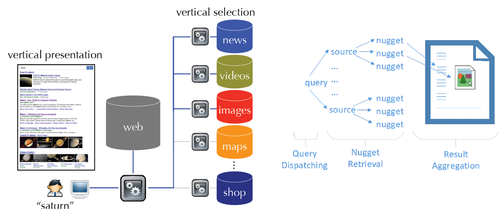 Auf Basis einer Query passende Quellen (Sources - in diesem Fall angeschlossene IRS) gesucht, aus diesen Quellen die passenden Informationsteile (Nuggets) extrahiert und schließlich dargestellt: