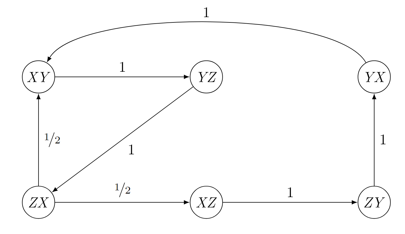 Die folgenden Abbildung zeigen eine Markovkette
