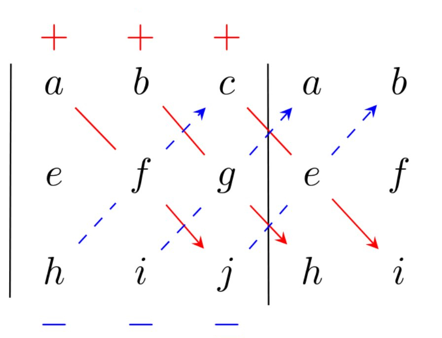 zunächst durch seine ersten beiden Spalten. addieren die Produkte aller möglichen Diagonalen von oben ausgehend,