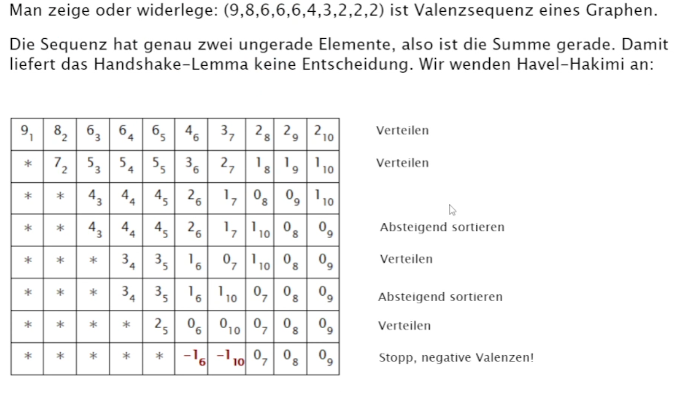 eine monoton fallende Folge. Mithilfe des Verfahrens nach Havel-Hakimi können wir bestimmen, ob