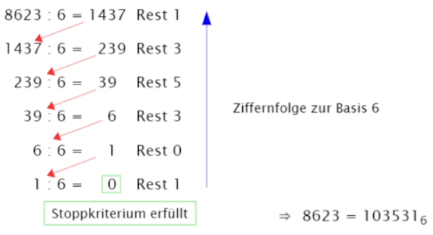 der Basis in eine Zahl der Basis umzurechnen, geht man wie folgt vor: Code des Algorithmus