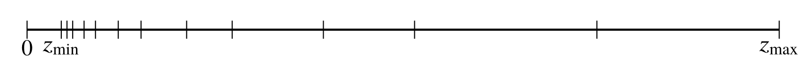 Eine Konsequenz der Normalisierungsbedingung ist, dass die Maschinenzahlen in Gleitkommadarstellung nicht gleichmäßig verteilt sind. Visuell betrachtet, wächst der Abstand zwischen benachbarten Zahlen mit ihrem Betrag.