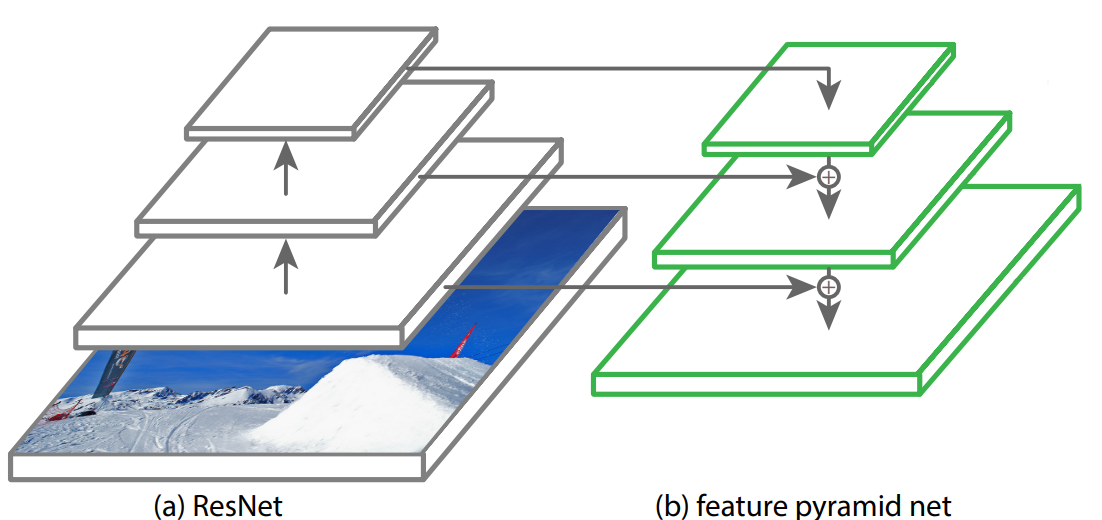 Die Feature Pyramid im RetinaNet enthält Inputs aus den drei obersten Blöcken des ResNets: C3, C4 und C5.