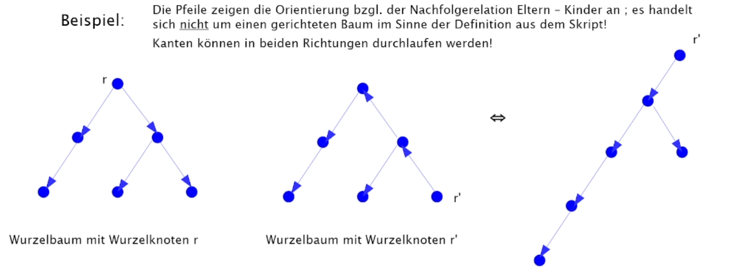 als Wurzel aus, so bezeichnen wir als Wurzelbaum. Mit Benennung einer Wurzel wird aus dem Baum ein “orientierter” (nicht gerichteter) Baum. Nachbarschaftsbeziehungen werden von der Wurzel weg und hin zu den Blättern betrachtet.