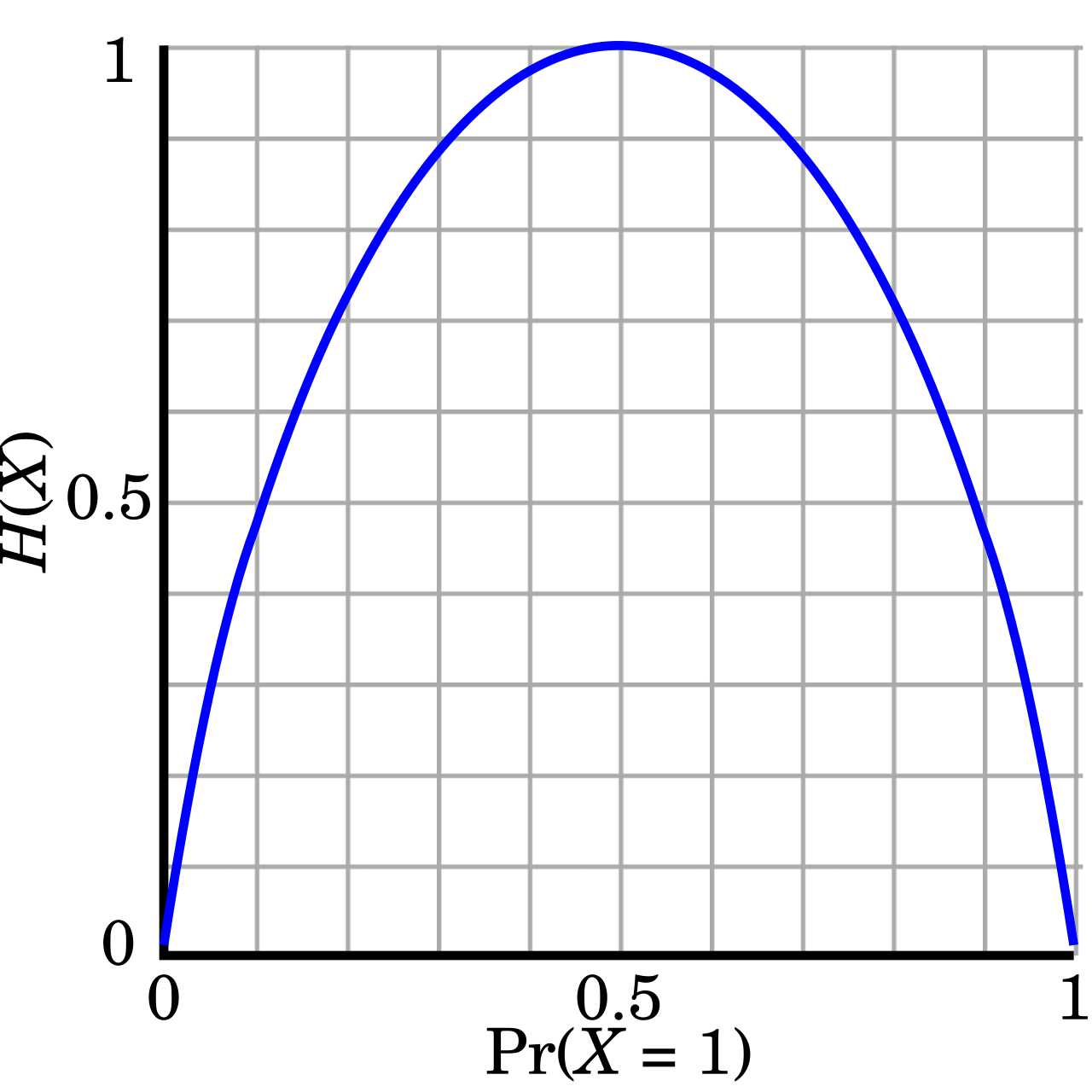 ) einer binären Zufallsvariable , je nach Variation der Wahrscheinlichkeit . Die Entropie wird maximal, wenn :