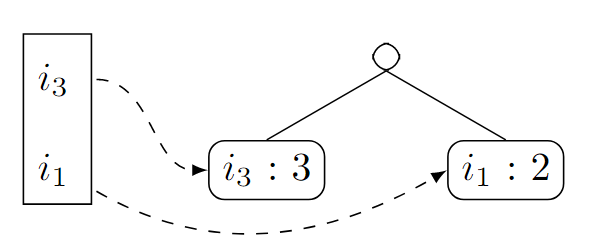 und handelt es sich also um häufige Mengen (da sie jeweils mindestens zwei Mail auftreten). Das ergibt dann folgenden FP-Baum: