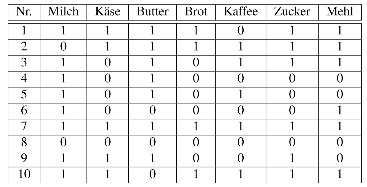 eine Menge beliebiger Elemente. Als Transaktionsdatensatz bezeichnen wir die Multimenge