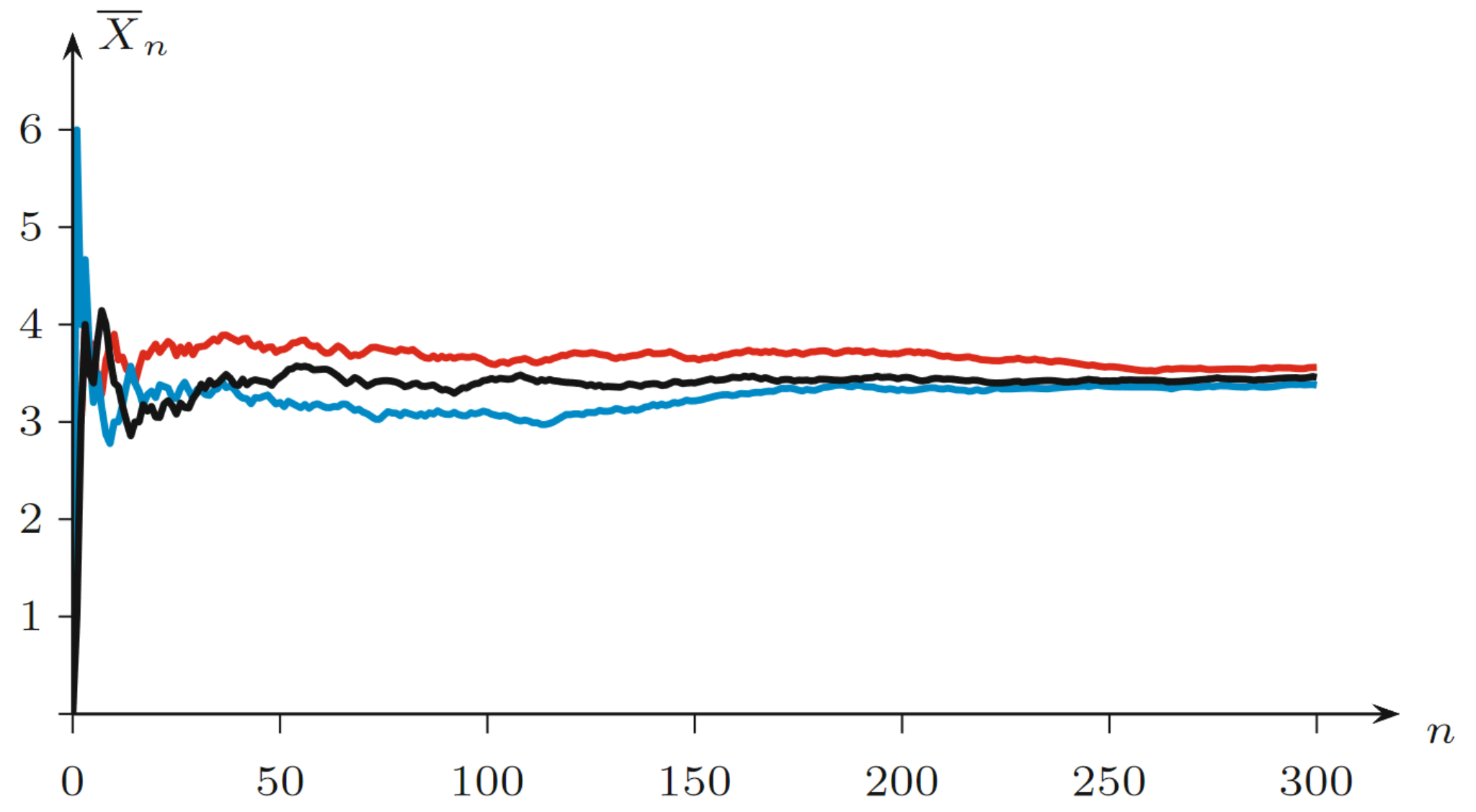 der Erwartungswert einer beliebigen Zufallsvariablen ist (die ja nach 1. alle denselben Erwartungswert haben).