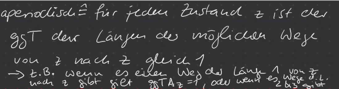Seieine zeithomogene Markovkette. Als aperiodische zeithomogene Markovkette bezeichnen wir